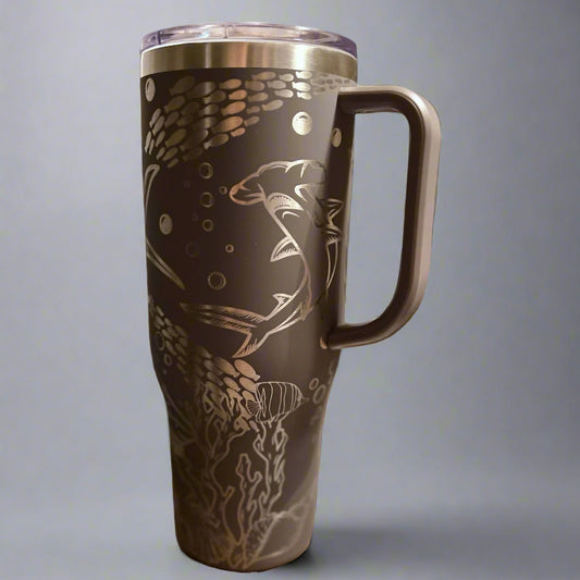 Shark 30 or 40 oz Stainless Steel Insulated Tumbler with Handle, Laser Engraved tumbler, tumbler with name, birthday gift for him/her
